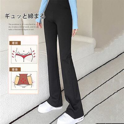 フレアパンツ ブーツカット 美脚パンツ パンツ ヨガパンツ 伸びる ベルボトムパンツ 裏起毛 ウェストゴム ストレッチパンツ 高見え レディース 暖か ワイドパンツ セミフレア ハイウェスト 裏
