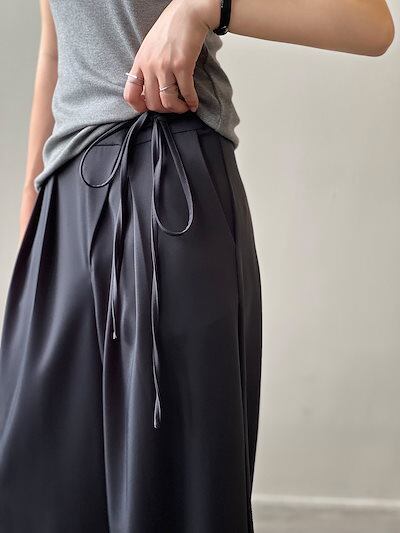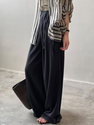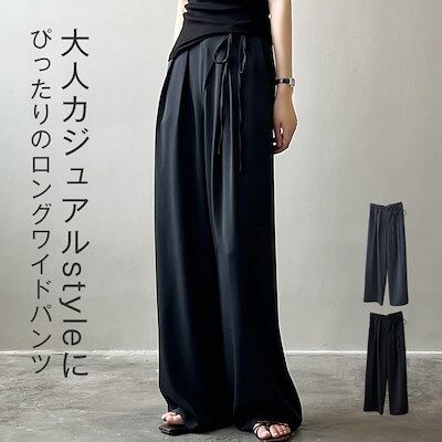 リボンベルト ボトムス ウェスト紐 イージーワイドパンツ タック 楽ちん 仕事 イージーパンツ すっきり ガウチョパンツ レディース ワイドパンツ スカーチョ 体型カバー ワイド カジュアル オフィス