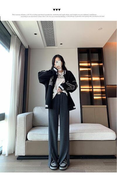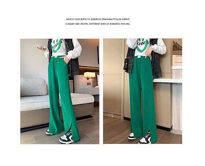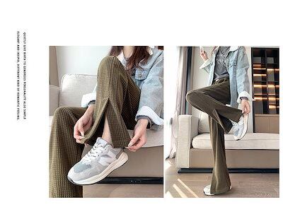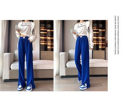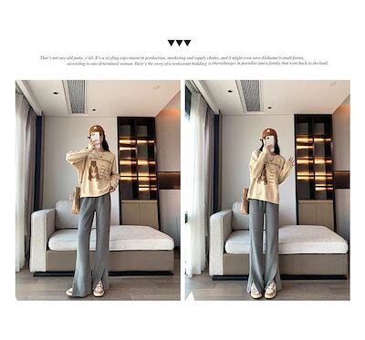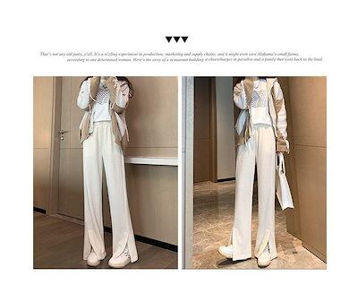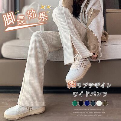 縦ライン 秋冬 ストレートパンツ 脚長効果 ワイドパンツ 細見え ボトムス 冬 ロング プリーツパンツ きれいめ パンツ 細リブデザイン レディース ワイド シンプル 長ズボン ゆったり 高見え レデ
