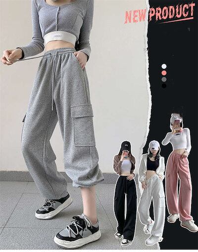 ボトムス 秋 ロング丈 イージーパンツ ワイド ゆったり 無地春 カーゴパンツ ストレート パンツ 楽ちん スウェット ウエストゴム トレンド ワイドパンツ リラックス レディース ゆったり 長ズボン
