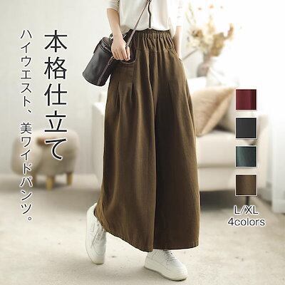 ワイドパンツ ズボン ゆったり コーヒー色 チノ XL きれいめ 体型カバー レッド レディース 大人 ロング ボトムス オーバーサイズ お洒落 パンツ チノパンツ ウエストゴム グリーン L 秋冬
