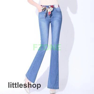 フレアパンツ レディース デニムパンツ ハイウエスト ボトムス ジーンズ ブーツカット スキニー スリム オフィス 通勤 OL 美脚