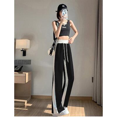 ワイドパンツ レディース 長ズボン イージーパンツ 接触冷感 ウエストゴム ハイウェスト 黒白 着痩せ 薄手 スリム おしゃれ ロング 夏服 オフィス