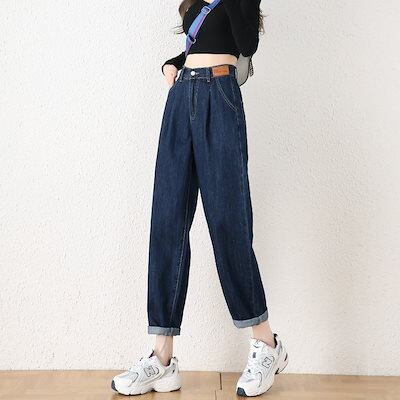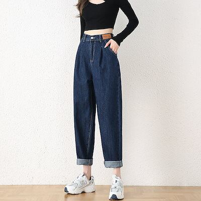 デニムパンツ ハーランパンツ レディース 秋冬新作 ハイウエスト ゆったり スリム ストレートチューブ 暖かい 韓国ファッション