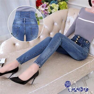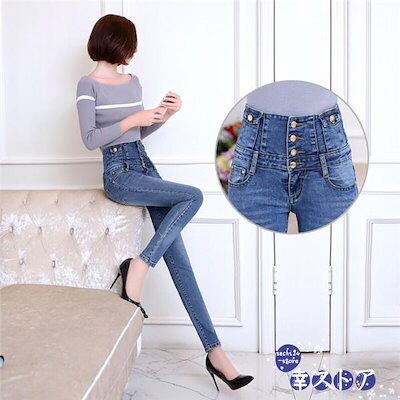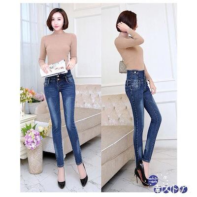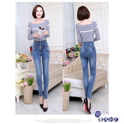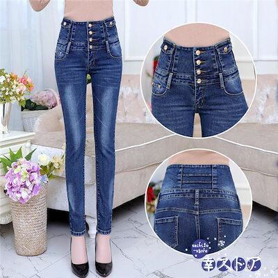【】 デニムパンツ レディース ハイウエスト ロング丈 ジーパン ジーンズ スリム スキニー パンツ 細身 美脚 伸縮 着痩せ 定番 おしゃれ