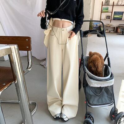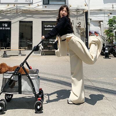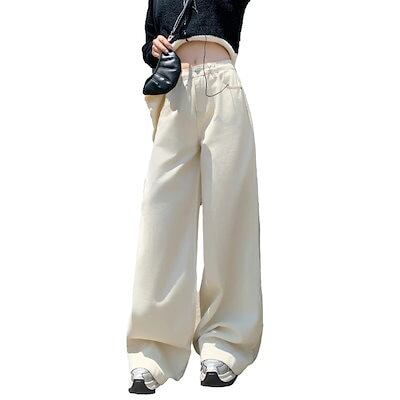 オールマッチ ジーンズ ドレープ マイラード ルーズ レディース カジュアル スリム コーヒーブラウン ワイドレッグ ストレートパンツ ハイウエスト