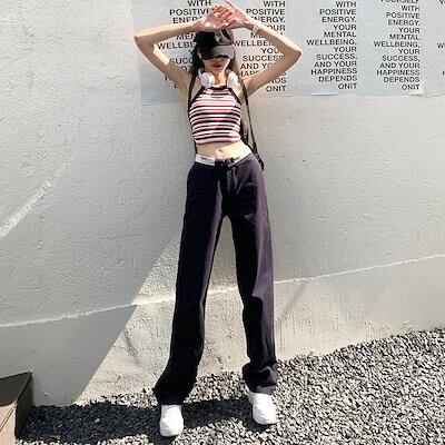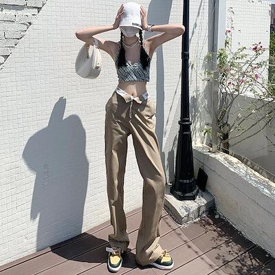 ストリートカジュアルパンツ ルーズストレートパンツ 個性 オーバーオール レディース ウエスト細め カーキ 2022 レディース