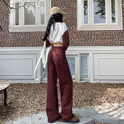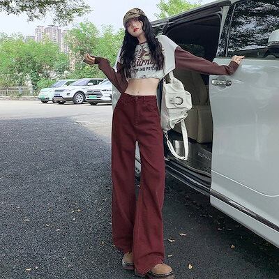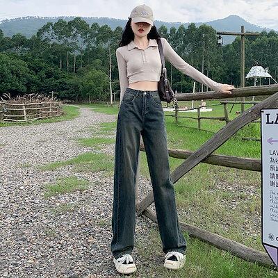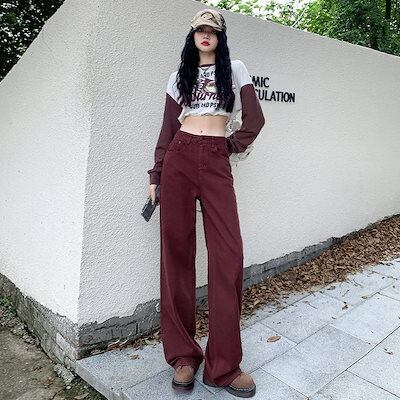 アメリカンレトロワイドレッグストレートジーンズレディースハイウエストゆったりスリミングファッショナブルオールマッチモッピングパンツ
