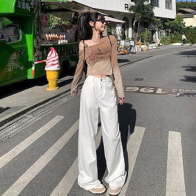 シンプルでファッショナブルなレディースワイドレッグジーンズハイウエストゆったりスリムで背が高くどんなスタイルにも合うストレートレッグフロアレングスパンツ