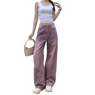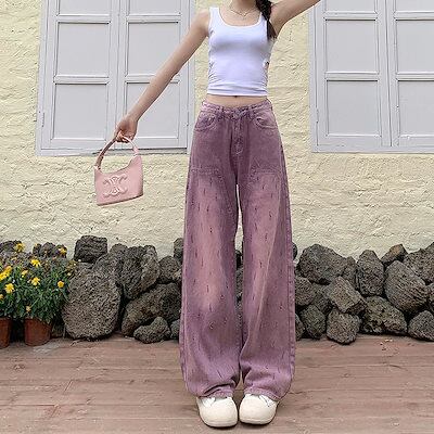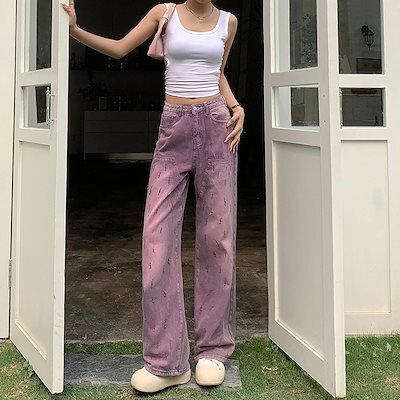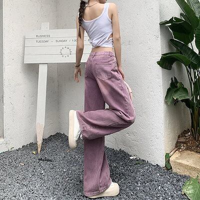 ニッチなレトロパープルワイドレッグジーンズレディースハイウエストルーズスリムデザインオールマッチストレートパンツ