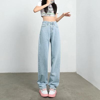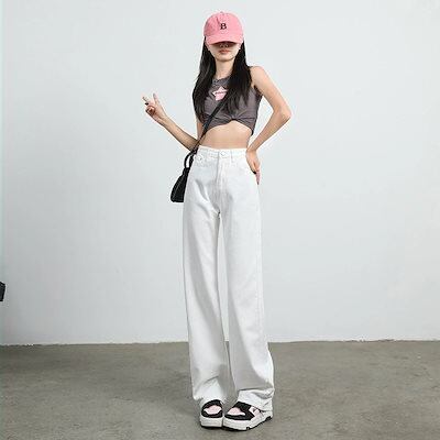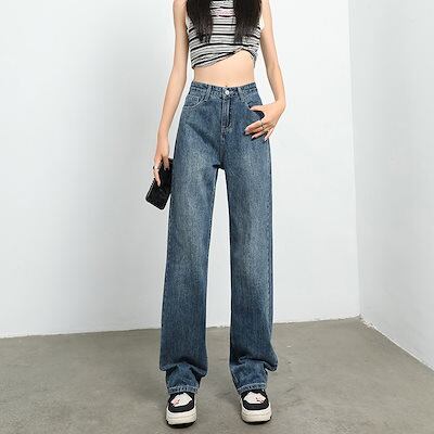 アメリカンレトロナローバージョンワイドレッグジーンズレディースハイウエストルーズスリムオールマッチストレートパンツ