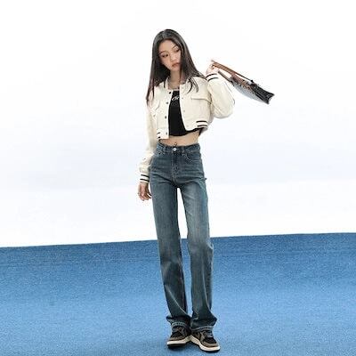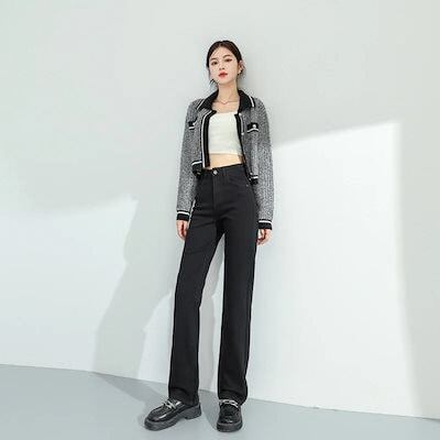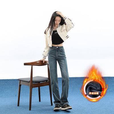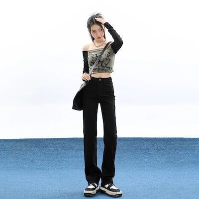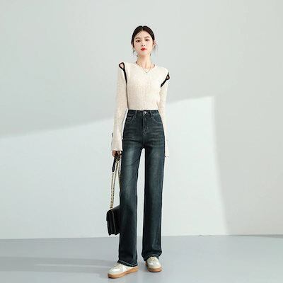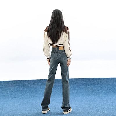 スリムフィット レッグ ジーンズ ルーズ レディース ハイウエスト ストレート
