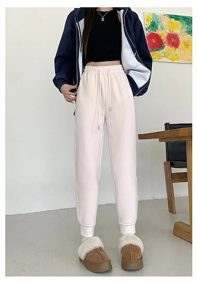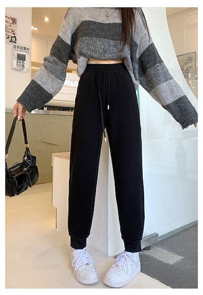 裏起毛 スウェットパンツ レディース パンツ スポーツウェア テーパードパンツ 秋冬 細身 ロングパンツ ストレッチ スウェット トレーナー ボトムス ロング ウエストゴム リボン ハロンパンツ 無地