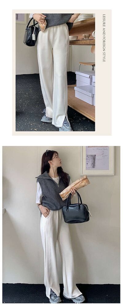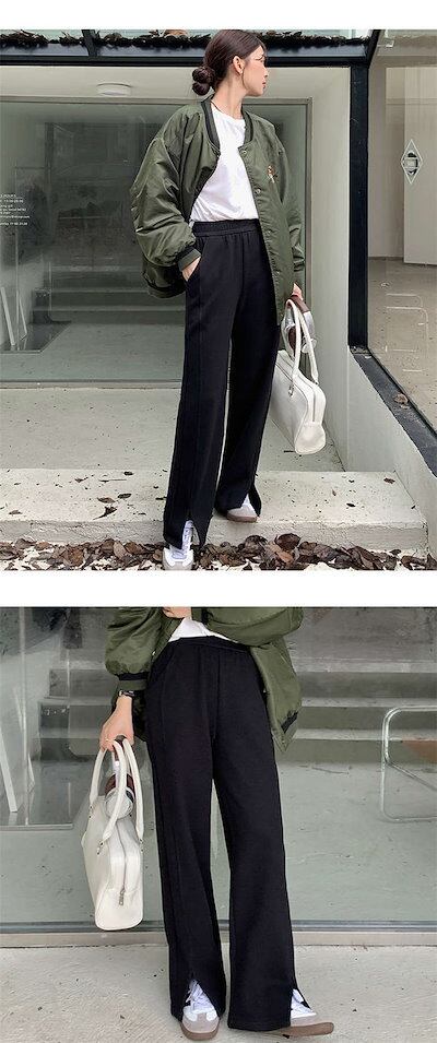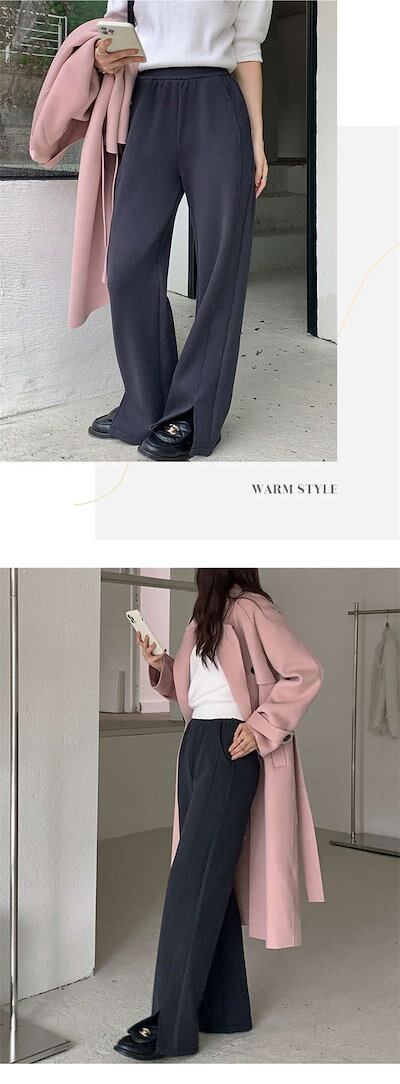 イージーパンツ ワイドパンツ レディース パンツ ロング スウェット 裏ボア ワイド ウエストゴム ロングパンツ 長ズボン サイドスリット ストレッチ ボトム ロング丈 サイドポケット リブパンツ