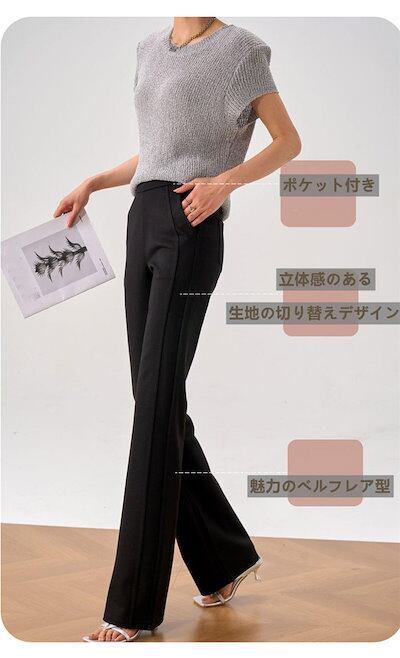 フレアパンツ レディース ハイウエスト フレア ベルボトム ストレッチ ベルボトムパンツ ストレッチパンツ マキシパンツ 無地 シンプル レトロ モード おしゃれ きれいめ 美尻 美脚ライン 脚長効果