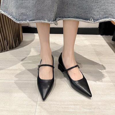 パンプスローヒール 24 新作 太ヒール ポインテッドトゥ ハイヒール L エレガント