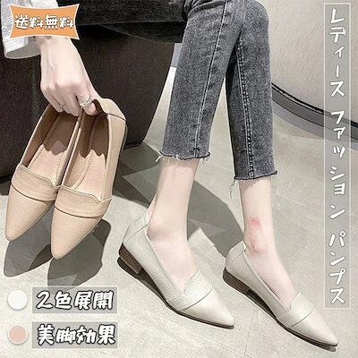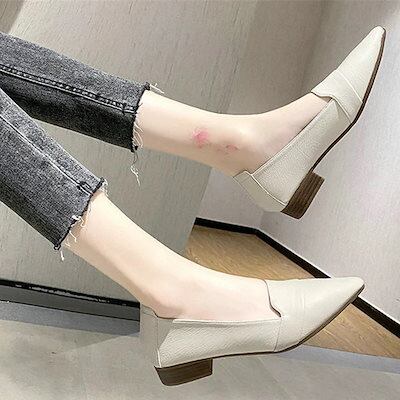 パンプス レディース 新作 ポインテッドトゥ ローヒール 仕事の靴 レザー シンプル 美脚 通勤 走れる パンプス 痛くない 疲れない 歩きやすい