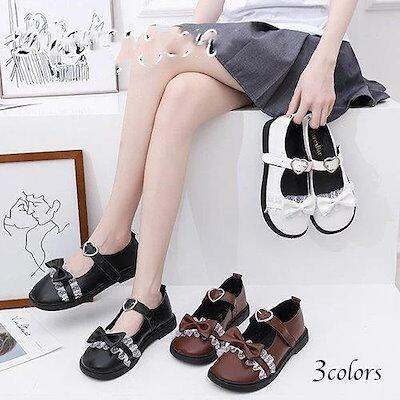 ロリータ歩きやすいきれいめかわいいラウンドトゥ ローヒールストラップ