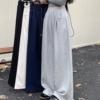 2024 秋 パンツ ロング丈 ハイウエスト ズボン 美脚効果 脚長効果 細見えサイド 冬 春 おしゃれ かわいい 韓国系ファッション レディース お出かけ トラック