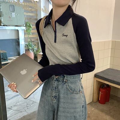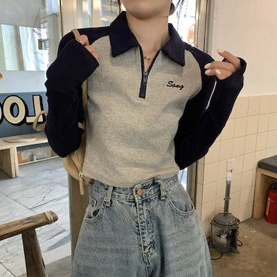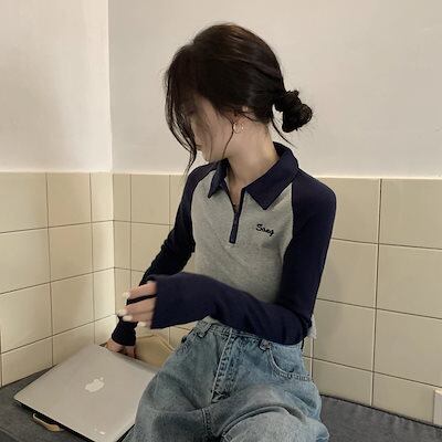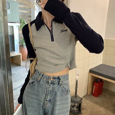 2024秋 長袖 Tシャツ ショート丈 カットソー トップス カジュアル 配色韓国系ストリートへそ出しK-POPタイトネックスリーブ 肌見せ T ファッションレディース かわいいハーフ衣装風冬トップス3