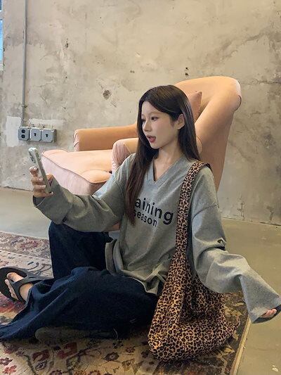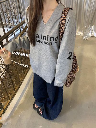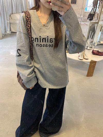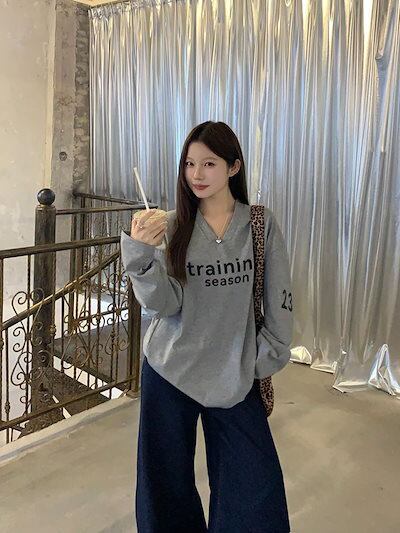 2024 秋冬トップス スウェット 長袖 Vネック 英語 数字 23 ゆったり 秋 白 おしゃれ かわいい 韓国ファッション レディース お出かけ