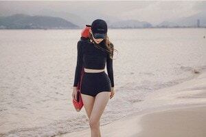タンキニ 長袖水着 ショートパンツ 着痩せ シンプル カッコイイ クール スポーティ ジム レトロ ハイウエスト スタイリッシュ 可愛い 大人 お姉さん イイ女 スタイルアップ モテ レディース ブラ