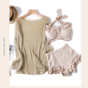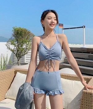 水着 レディース 体型カバー ビキニ 3点セット かわいい カジュアル 長袖 メッシュ Tシャツ キャミソール ショートパンツ タンキニ スポーティー 韓国 水着 ハイウエスト トップス スイムウェア