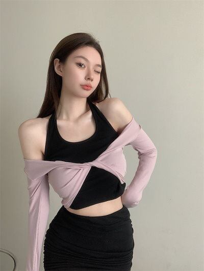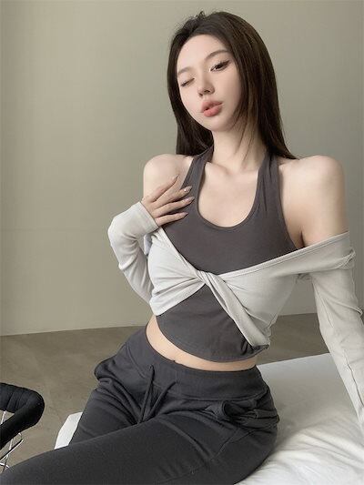2024秋 長袖 Tシャツ ショート丈 カットソー トップス カジュアル 配色 韓国系ストリート ロゴ へそ出し タイトネックスリーブ 肌見せ T ファッションレディース かわいい衣装風冬トップス