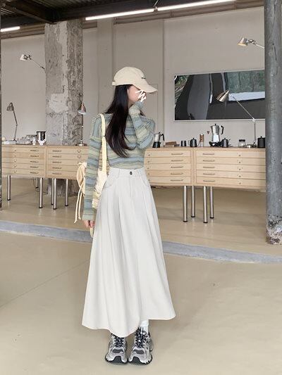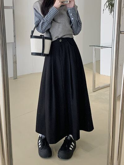 2024秋冬スカート ロング丈 Aライン ハイウエスト 美脚効果 脚長効果 細見え 秋 白 黒 おしゃれ かわいい 韓国ファッション レディース お出かけ
