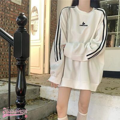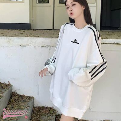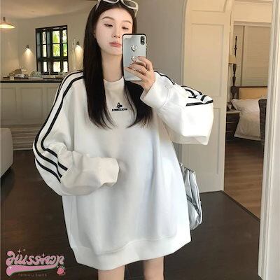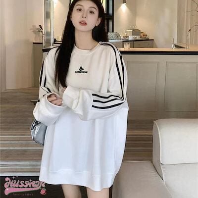 2024 秋冬 トップス セーター 長袖 かわいいラウンドネック T シャツ レディース 韓国 ルーズ ゆったり 無地 カジュアルスリーブおしゃれサイズ シルエットサイドファッション系スリーお出かけ春