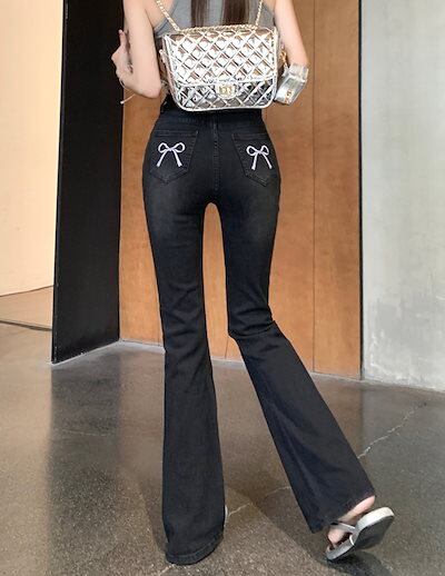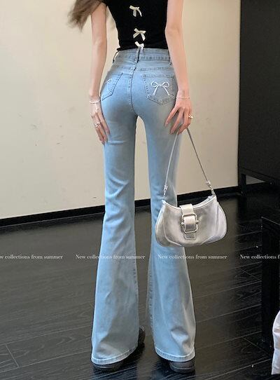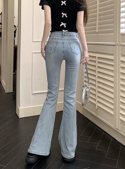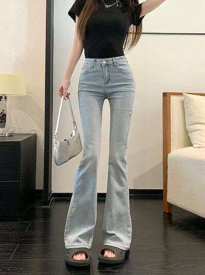 2024秋 パンツ デニム ジーンズ ロング丈 ハイウエスト 美脚効果 脚長効果 細見え ウォッシュ加工 冬 春 おしゃれ かわいい 韓国ファッション系 お出かけ