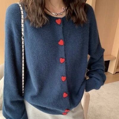 2024 夏秋トップス カーディガン ニット セーター ラウンドネック ボタン 長袖 ゆったり 細見え 秋 おしゃれ かわいい ガーリー キュート 甘め 韓国ファッション レディース お出かけ