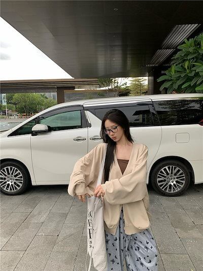 2024 夏トップス カーディガン 長袖 ボタン Vネックゆったり 大きめサイズ 丈長め 細見え 夏 赤 レッド おしゃれ かわいい 韓国ファッション レディース お出かけ