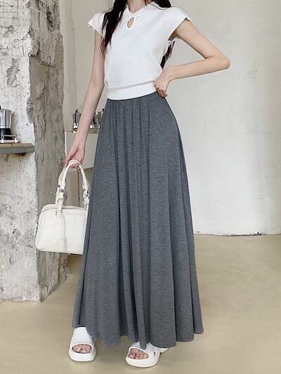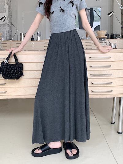 2024 春秋 スカート ロング丈 ハイウエスト 美脚効果 脚長効果 細見え 春 白 黒 韓国系ファッション レディース かわいい おしゃれ カジュアル お出かけ