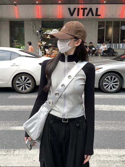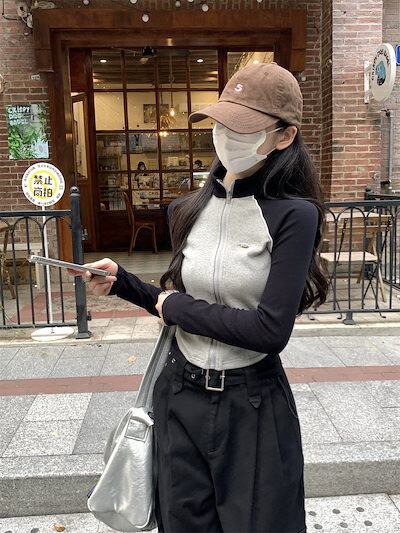 2024春夏 アウター ショート ブルゾン かわいい 長袖 カジュアル ファッション フルブルゾン トップス ハイスタンド ストリート レディースお出かけトラック