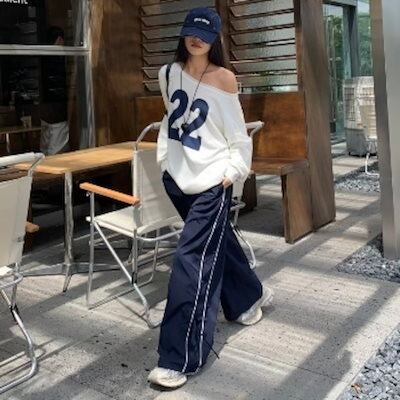 2024 秋冬トップス 長袖 数字 22 肌見せ ゆったり 細見え 秋冬 ホワイト 白 おしゃれ かわいい 韓国系ファッション レディース お出かけ