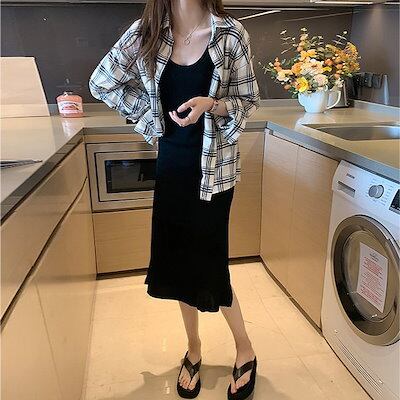 2024春夏 新作 韓国 優しいです レトロ チェック 気質 ワケアリ 高級感 薄手シャツ 長袖 オシャレ レディース ゆったり トップス 通勤 普段着 百掛け 仙気