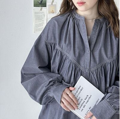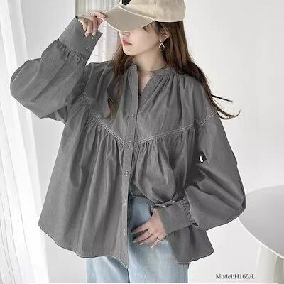 新作 韓国ファッション 怠惰風 ゆったり ブラウス ランタン袖 気質 カジュアル シャツ 着痩せ ワイシャツ 長袖 レディース トップス