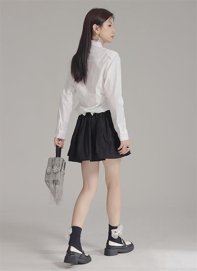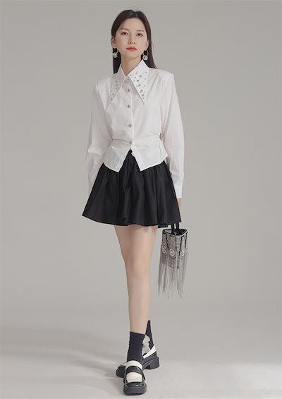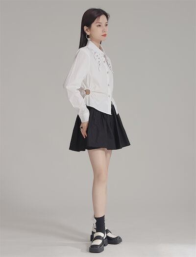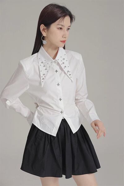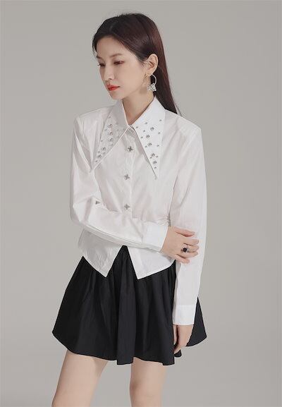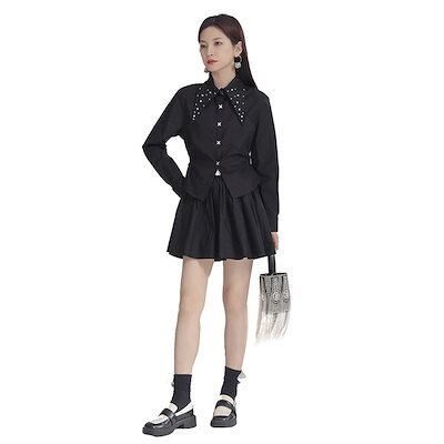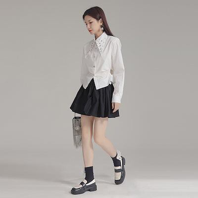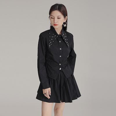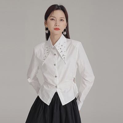 【J.Fashion】 2025新品 長袖 ブラウス リベット飾り ショート レディース シャツ 関連商品は店で購入可能 福袋