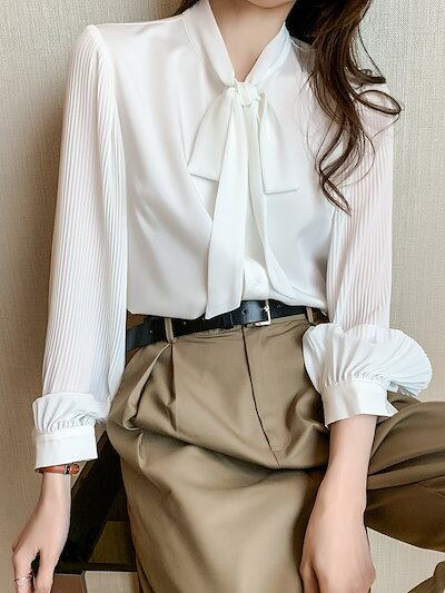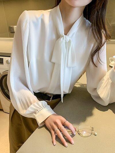 今っぽシアーシャツ 長袖ブラウス 2024春新作 韓国ファッション シフォン 蝶結び ブラウス レディース シャツ 着痩せ Tシャツトップス UVカット ブラウス ゆったり ロングTシャツ