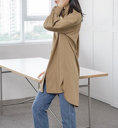 2024 春 新作 レディース ブラウス ゆったり スリット セミロング ランタン袖 気質 ブラウス