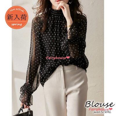 長袖ブラウス? ブラウスレディース オシャレブラウス 春秋新作 シフォンブラウス ドット柄ブラウス パフスリーブ 長袖トップス 韓国 通勤OL