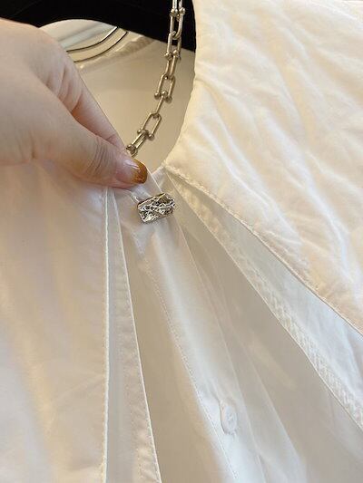 ▲先述のとおり、海外製品の縫製の荒さやボタン付けの甘さ、ほつれ等は良品の範疇とみなしております。