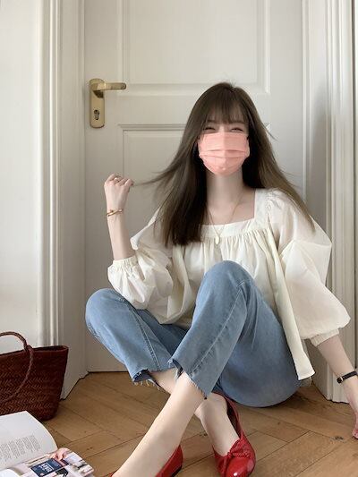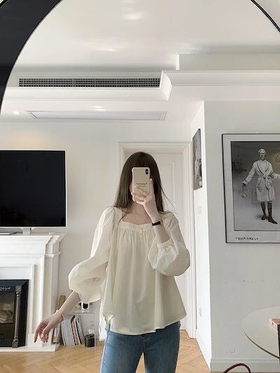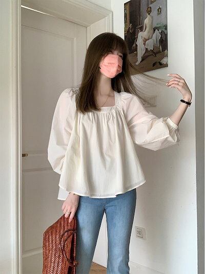 今っぽシアーシャツ 韓国ファッションッ ブラウス 夏新作 バブル袖 スクエアネック キュート 長袖 百掛け レディース シャツ 日焼け防止