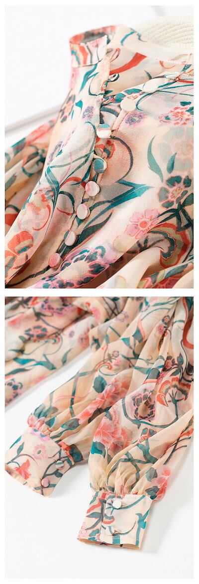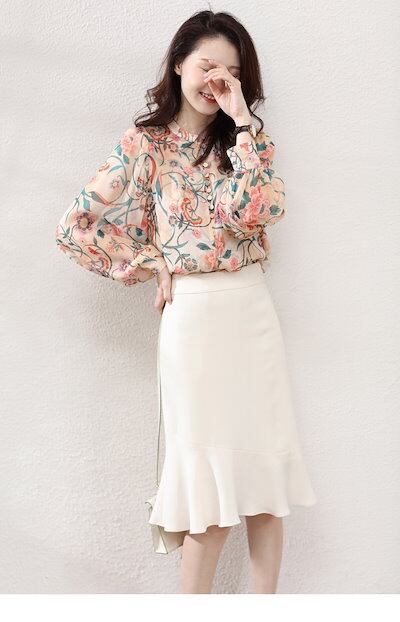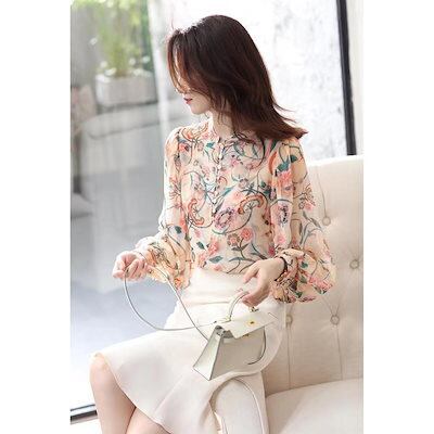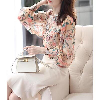 ブラウス レディース きれいめ 40代 春夏秋新作 オシャレシフォンブラウス 花柄シャツ パフスリーブ 長袖トップス 大人 通勤OL ゆったり シャツ30代 50代