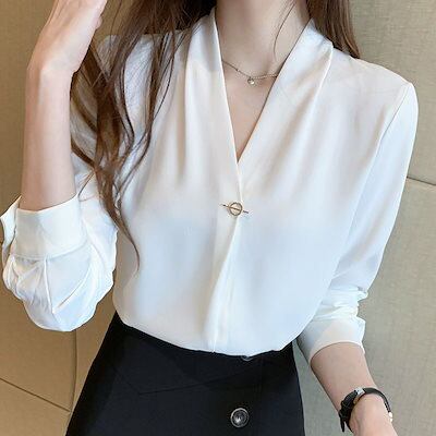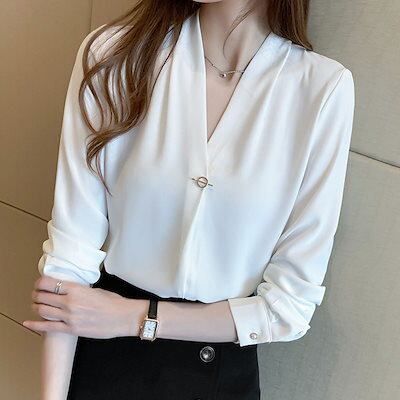 今っぽシアーシャツ 韓国ファッションッ インナー Vネック おしゃれ 百掛け 長袖ブラウス 春新作 シフォンブラウス レディース シャツ