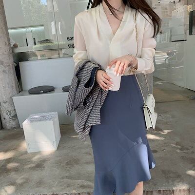 韓国ファッション トップス インナー Vネック ゆったり 長袖ブラウス 春新作 シフォンブラウス レディース シャツ