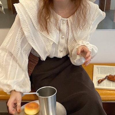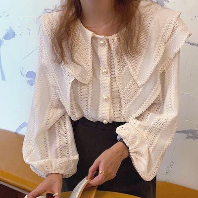 韓国ファッションップスランタン袖 インナー 長袖ブラウス 春新作 シフォンブラウス レディース シャツ ゆったり