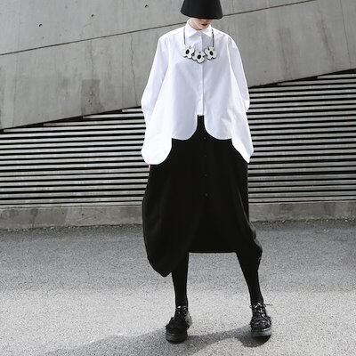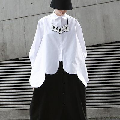 2024新作 レディース 長袖 イレギュラーヘム 変形デザイン アシンメトリー トップス 着回し裾アシメ ブラウス モード系 長袖 コットン 通勤 OL フォーマル ブラック ホワイト プレゼントシア