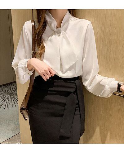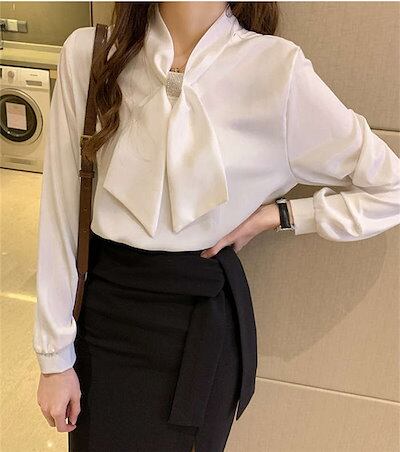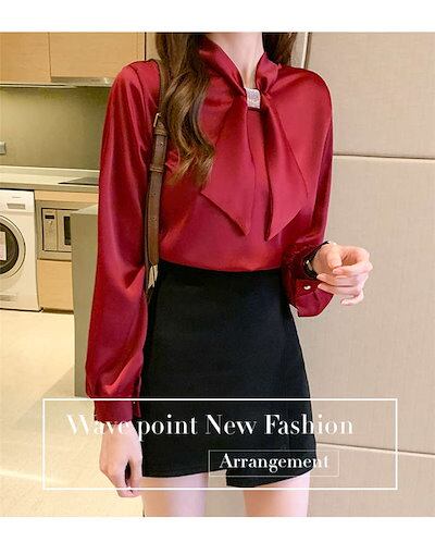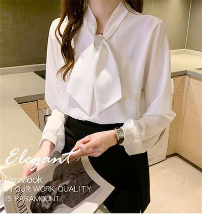 ボウタイブラウス 長袖 ブラウス ボウタイ シャツブラウス とろみシャツ レディース ブラウス レディース きれいめ 40代 春秋新作 オシャレブラウス シルク風シャツ 長袖トップス リボンVネックブ